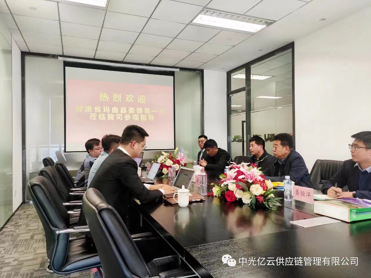 2022年2月28日下午,甘肅省瑪曲縣縣委常委、縣政府副縣長(zhǎng)付杰堂,縣政協(xié)副主席、縣工商聯(lián)主席、高投公司董事長(zhǎng)談貴成,高投公司黨支部副書記、綜合辦主任龔恒洋一行蒞臨中光億云供應(yīng)鏈管理有限公司考察調(diào)研,中光億云副總裁趙飛、張健、黃鍵陪同。